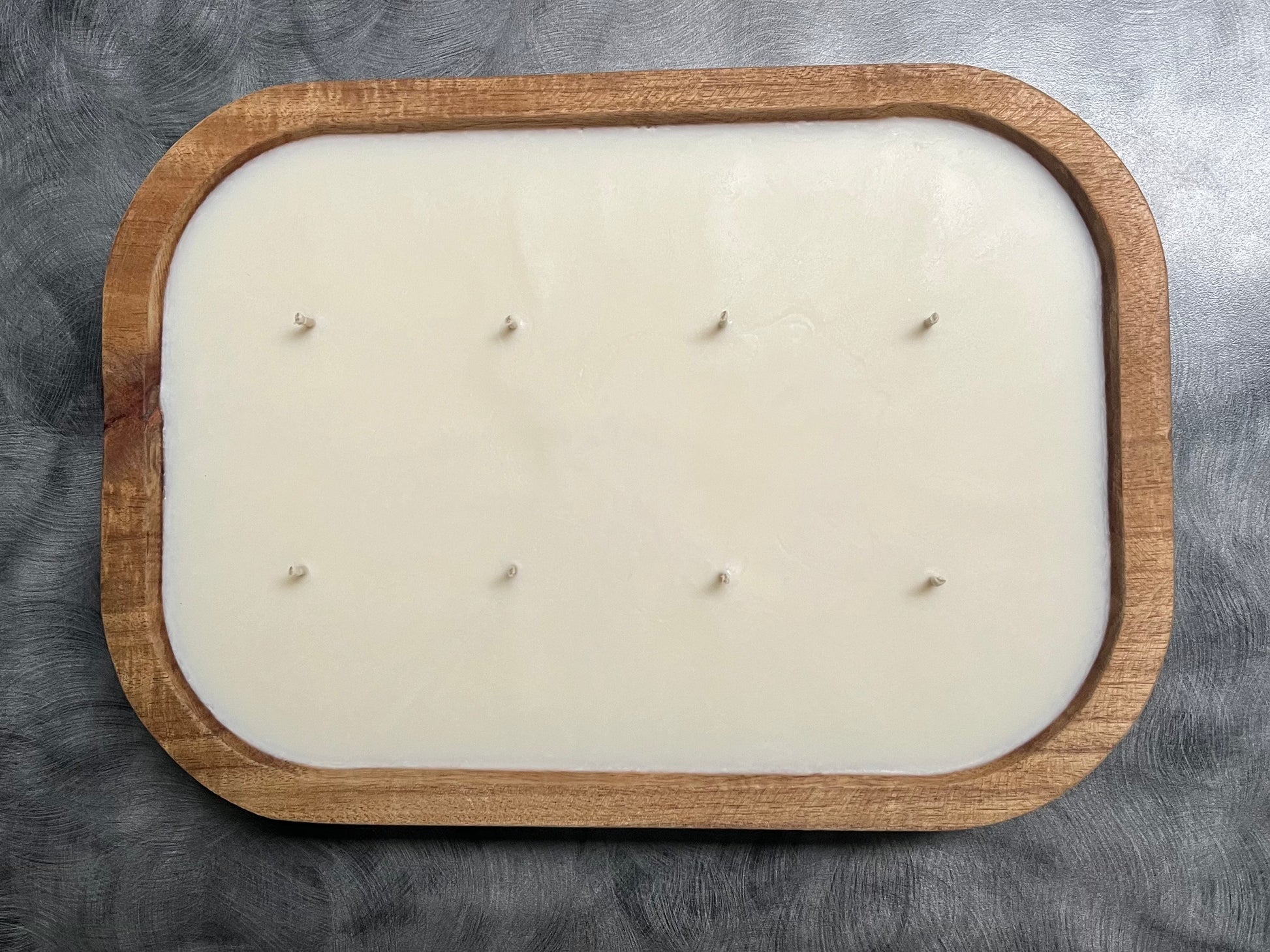 Handcrafted Acacia wooden bowls filled with personalized scented 100% soy wax. You pick the scent you want in the 8 wick size bowl. Made to order.